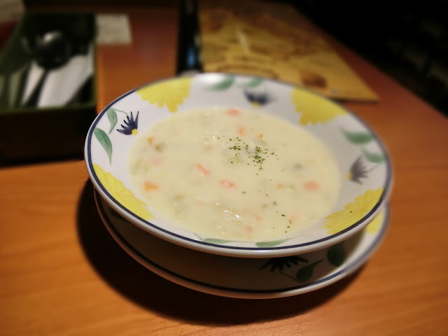 This is my favorite dish in Saizeriya. Seafood chowder. It is creamy and the taste really reminds me about home. In the States, i used to like the Maine clam chowder, and i think this Saizeriya chowder taste just like that. Last night i order two portions #shy. Well, it is too good.